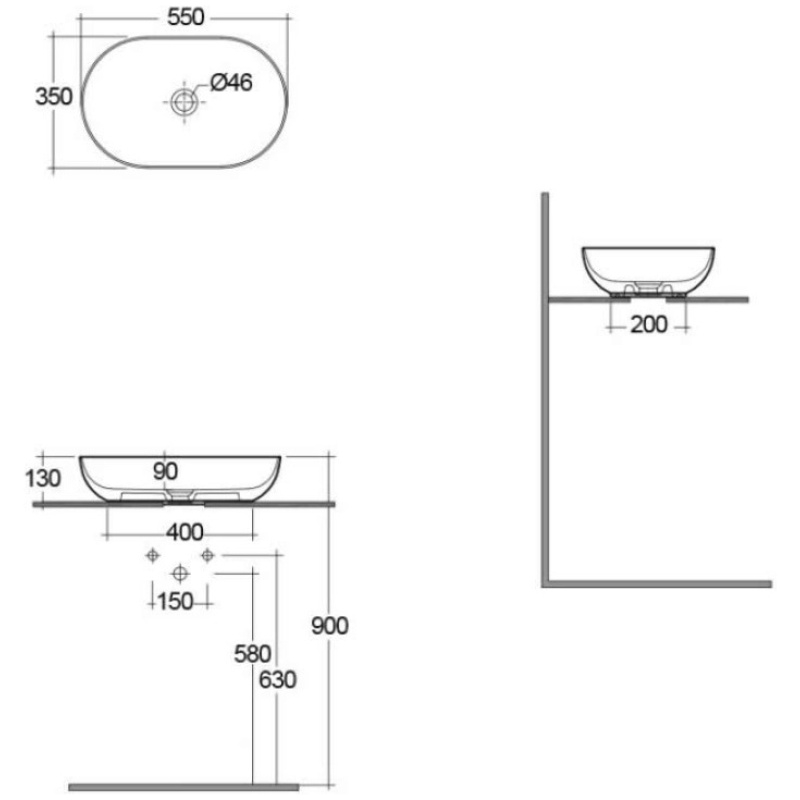 The Oval is best suited to a 60cm or larger vanity unit/countertop. It requires an un-slotted basin waste.