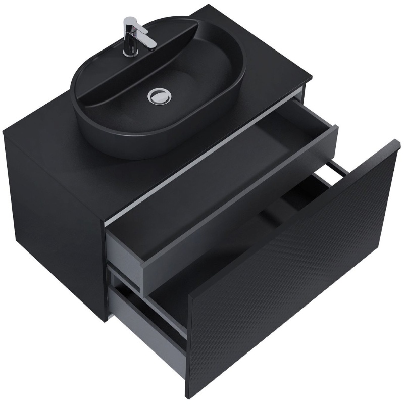 The Glow 900 Wall Hung Vanity comes with the worktop and basin included. (tap sold seperately) The Glow is a stunning range, the first of its kind and a true wow factor product. The storage capacity is excelllent. The Glow contains two deep drawers, the main front drawer opens to reveal the second concealed drawer offering a perfect amount of space to organise your vanity items.