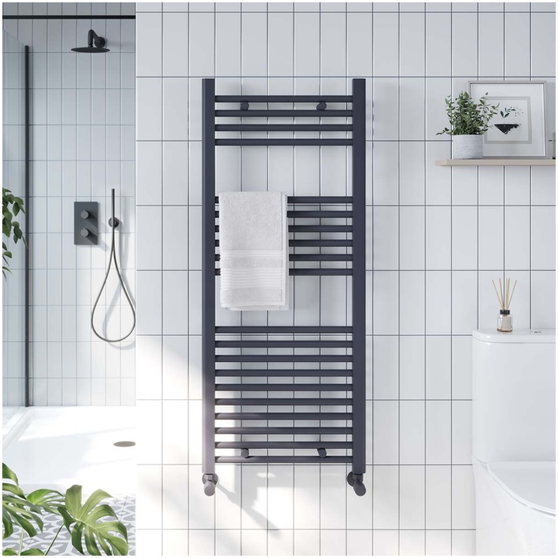 This Anthracite Towel Warmer is designed with luxury in mind and will make a stunning feature in your bathroom. The space-saving 500mm wide rail is crafted from durable steel with a satin Anthracite finish. Supplied with fixing kits, plugs, and vents. The pipe centers required for this rail are 450mm.
