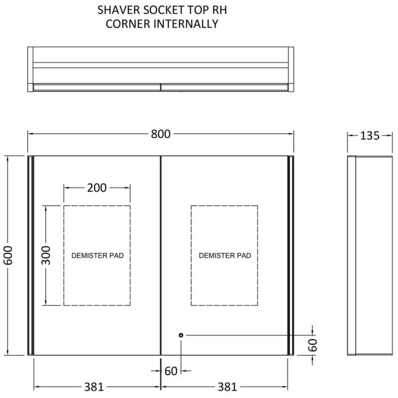 Touch sensor LED mirrored cabinet with integrated shaver socket