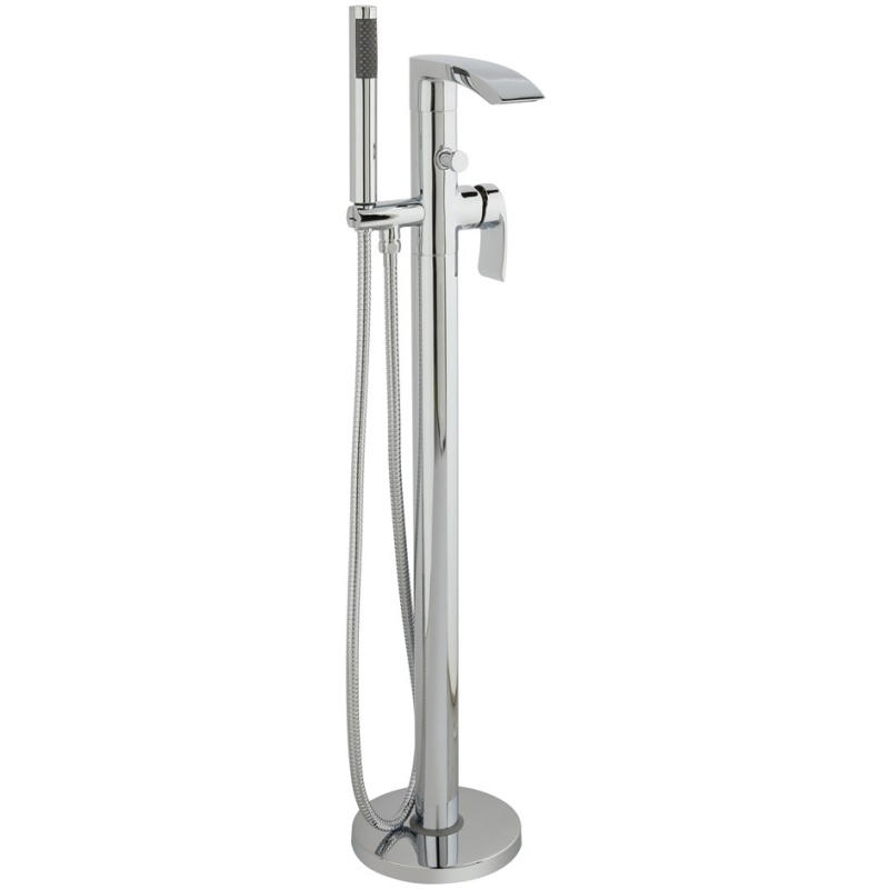 The Coss floor standing bath filler is available in both chrome and black. It has an additional showerhead feature. This tap works best with mains water pressure. It is not recommended for use with gravity-fed water systems unless the system is aided with a water pump.