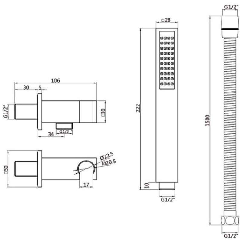 Chloe Brushed Brass Concealed Shower Set features luxurious diamond-cut cross knurling detail, 250mm Brushed Brass showerhead, 390mm Brushed Brass shower arm, 4mm thick face plate with a concealed adhesive strip, Brushed Brass wall outlet and handset holder. Complete with ribbed shower hose and multi-function handset. It is supplied with an EasyFit box to save time during installation.